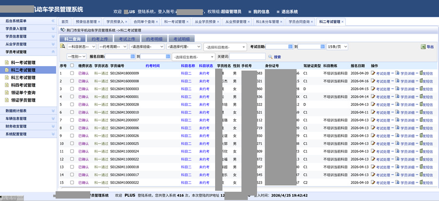 案例2:某驾校学员管理,业务管理自动化定制开发,数据库开发